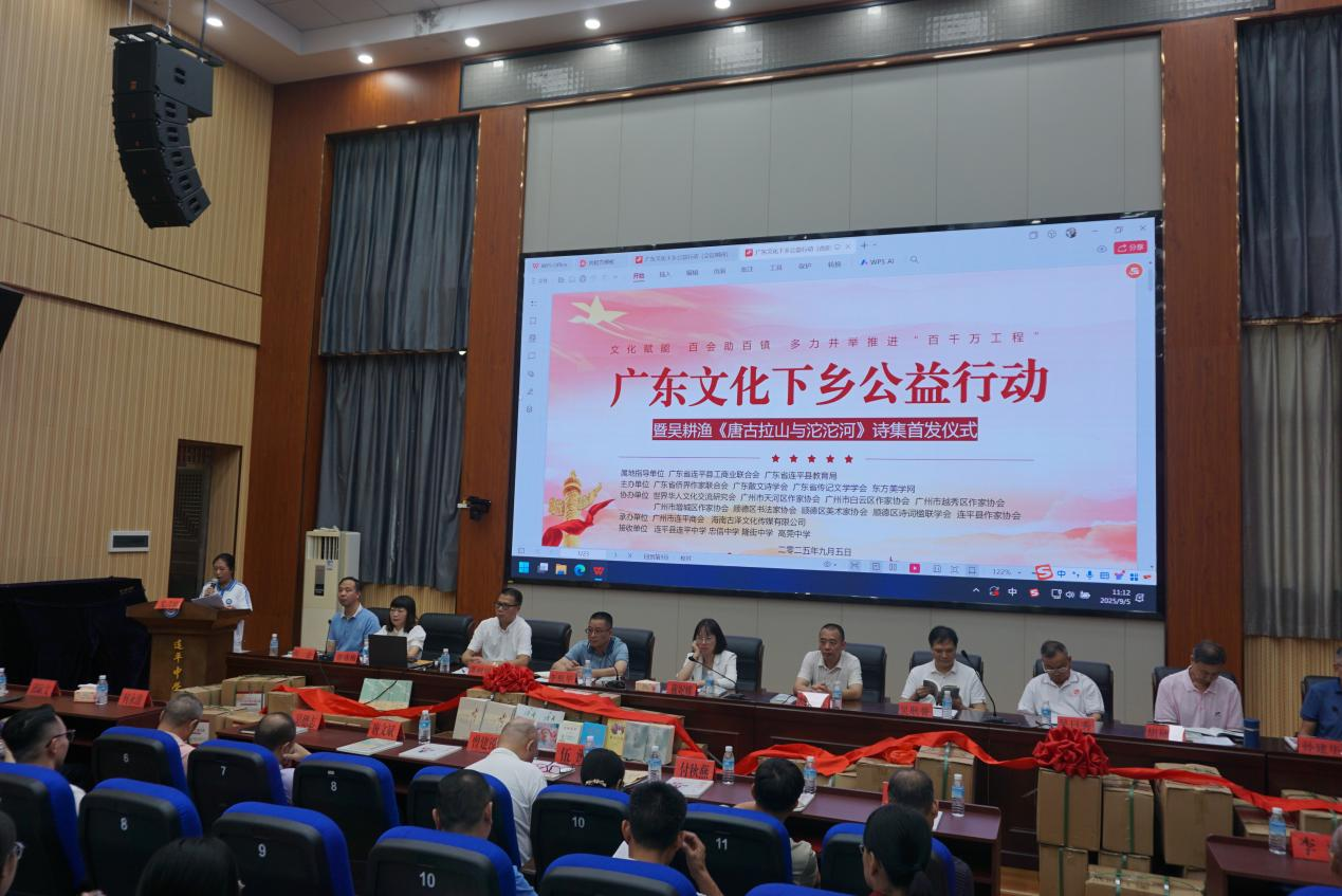 为深入推进“百千万工程”,扎实助力山区教育振兴,9月5日,广东省侨界作家联合会、广东散文诗学会、广东省传记文学学会等近30家文化团体携手走进粤北河源市连平县,在连平中学联合举办广东作家捐书公益行动暨吴耕渔诗集《唐古拉山与沱沱河》首发仪式。活动现场向连平中学、忠信中学等当地多所山区学校捐赠图书近五千册、书画作品百余幅,并正式发布“岭南文化进校园”三年计划,以文化力量为山区教育发展和“百千万工程”实施注入新活力。