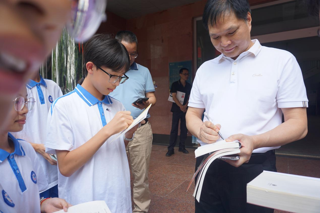 诗集《唐古拉山与沱沱河》首发环节,作者吴耕渔现场将一本本签名诗集传递到学生代表手中,以文学力量为山区学子送上精神养分。吴耕渔祖籍广东河源、现居广州,系广东省侨界作家联合会副秘书长、广东散文诗学会副会长,多年来深耕公益领域,曾获广州市社会组织优秀共产党员、广州市慈善会 2024 年慈善榜三星慈善达人等荣誉。